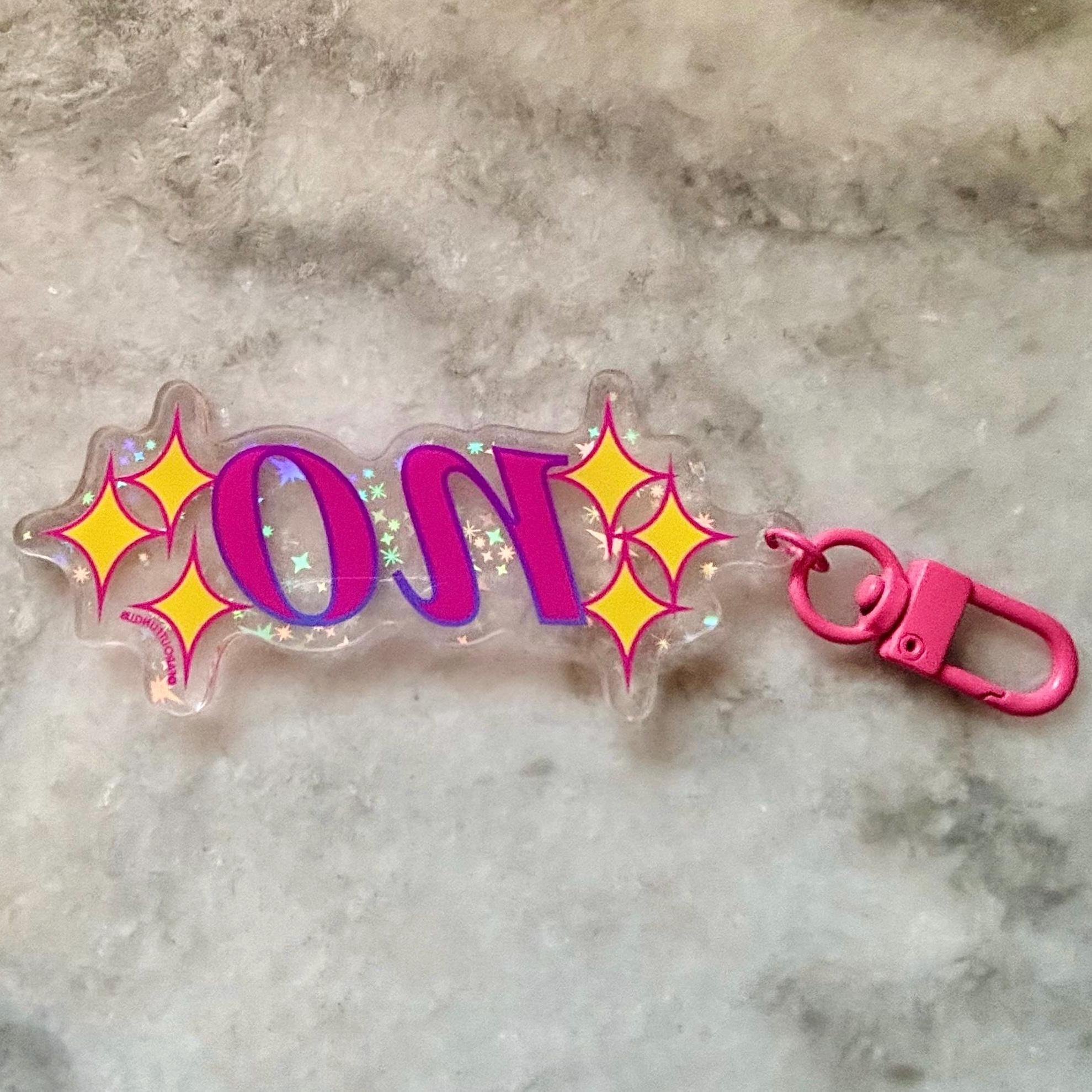 bratty sparkly no keychain | extra attitude funny accessory for babes with boundaries | bold statement pink clip keyring | holographic stars